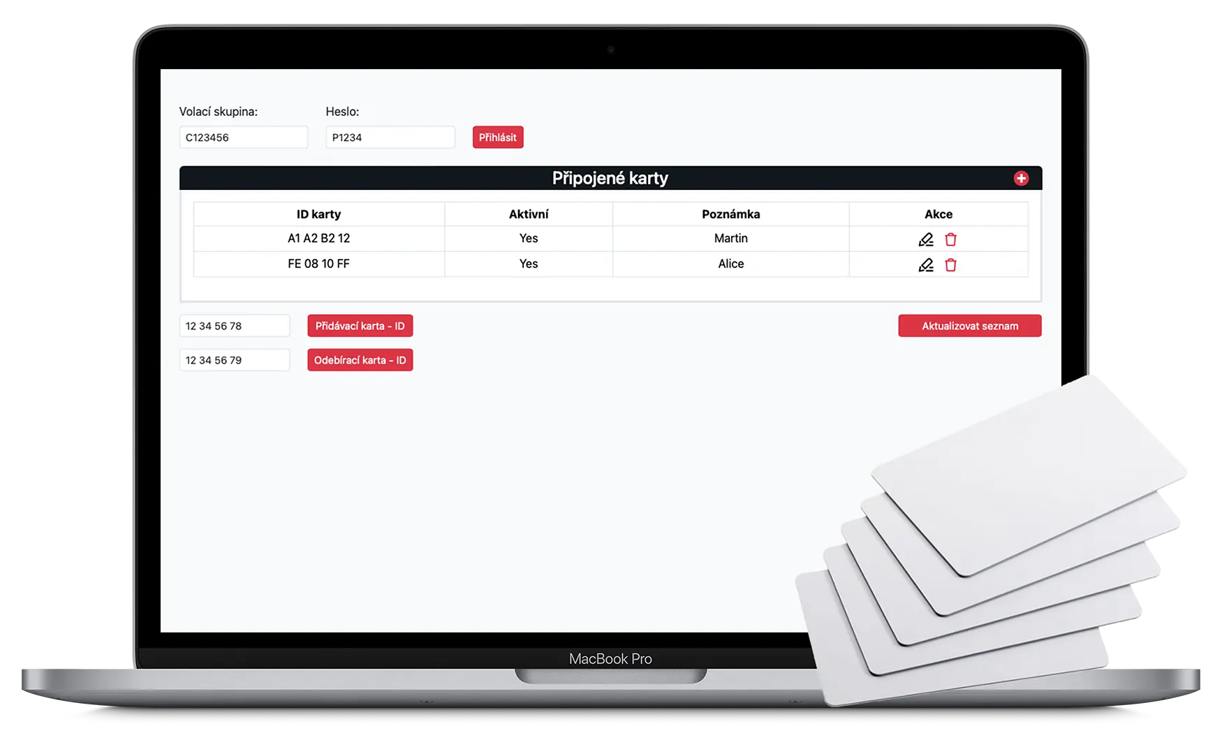 Activate the lock relay using an RFID card or mobile phone (NFC), simple web interface for card management